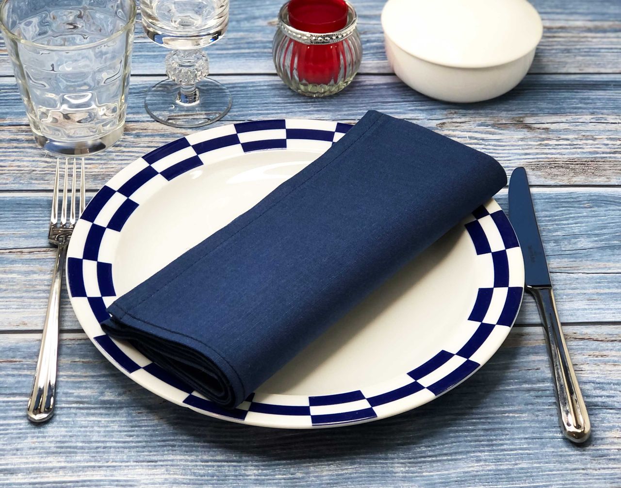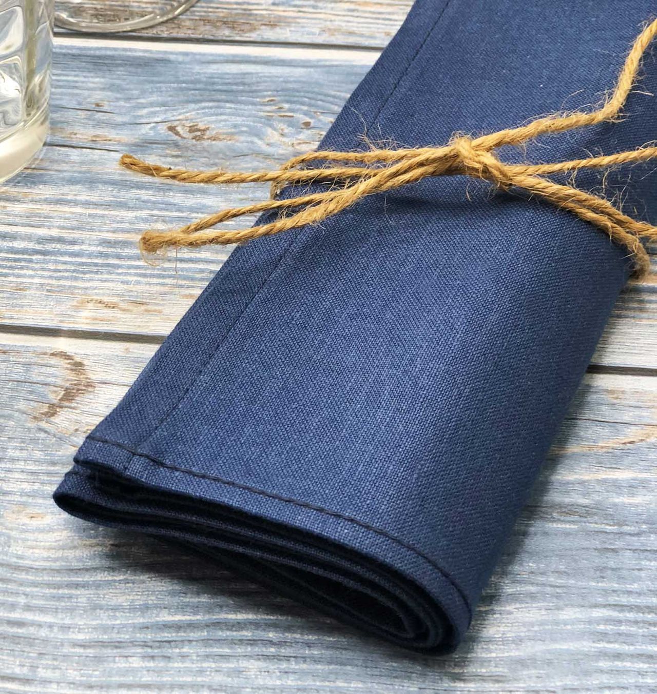 The dark blue half-linen napkins 50x50 cm are durable and suitable for frequent washing: