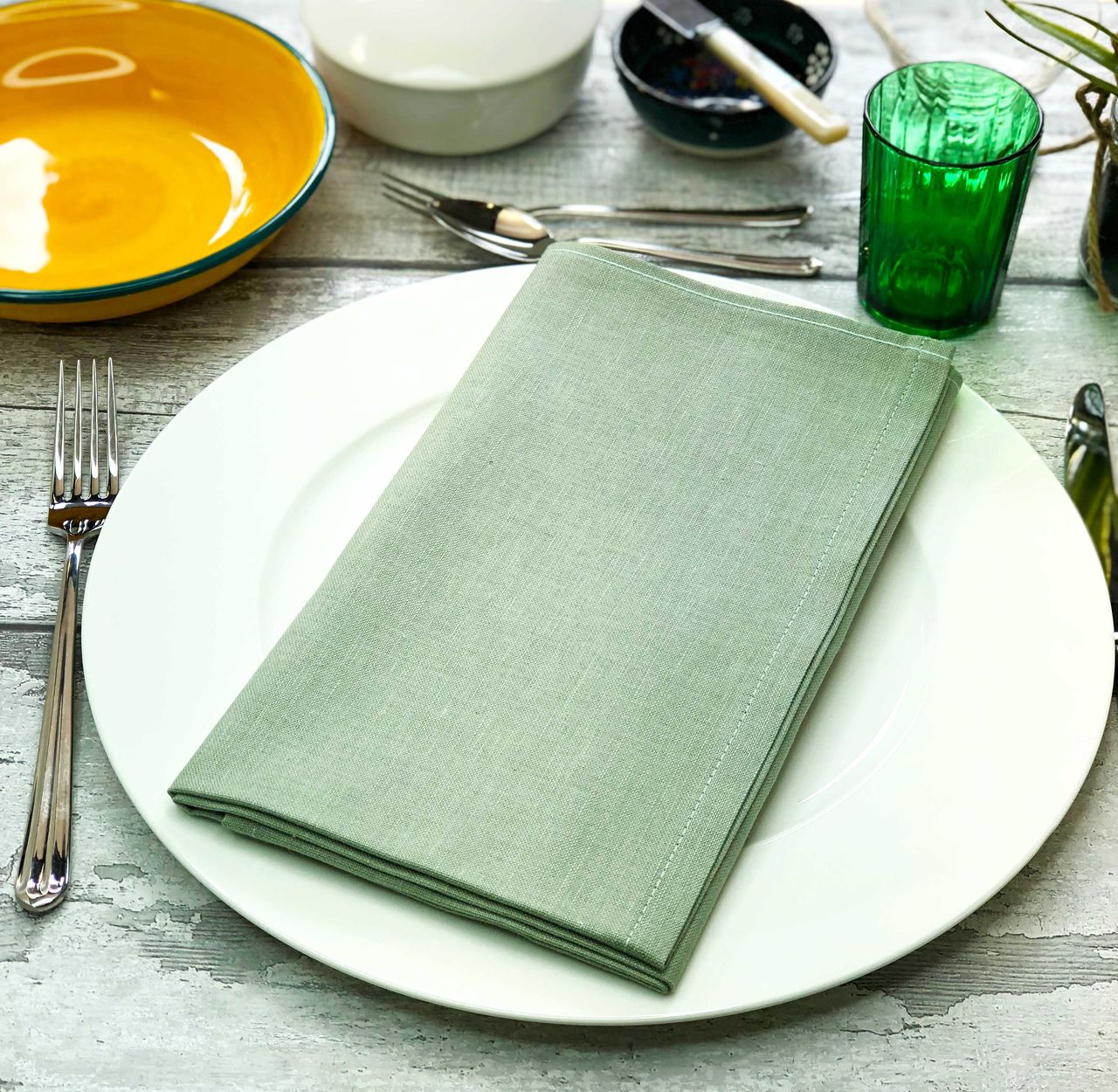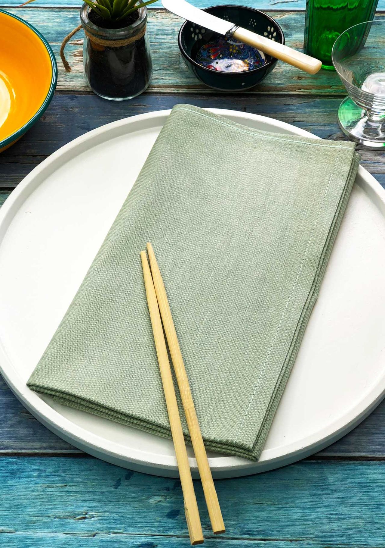 The light-green half-linen napkins 50x50 cm are durable and suitable for frequent washing: